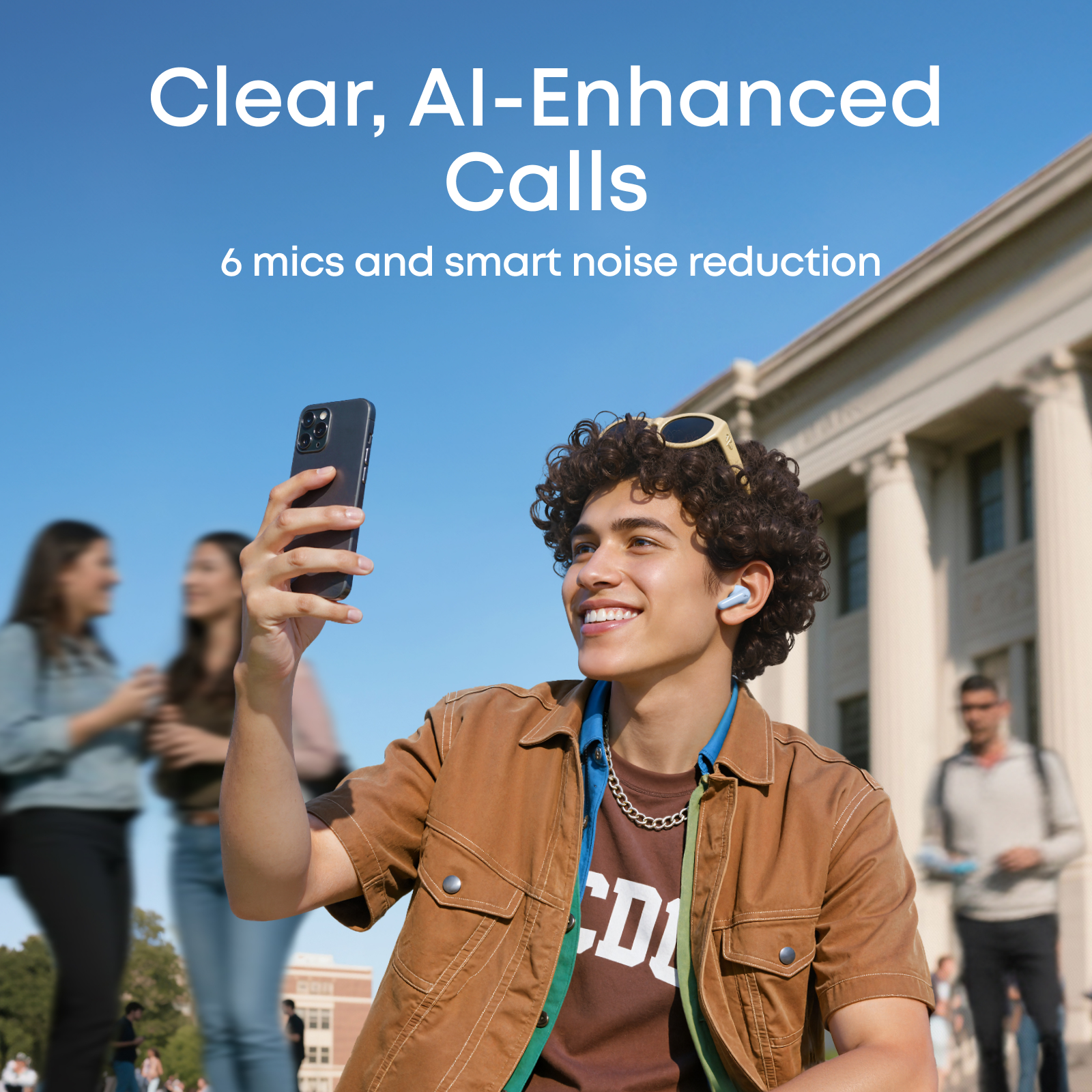 - Crisp, Clear Calls: Six microphones and advanced AI work together to filter out external noise and wind for crystal-clear calls. Be heard loud and clear no matter where you are, for conversations that sound like they're face-to-face.